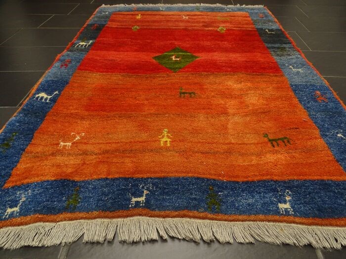 Een handgeknoopt Perzisch tapijt Gabbeh wordt aangeboden