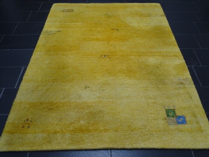 Een handgeknoopt oosters tapijt Gabbeh wordt aangeboden