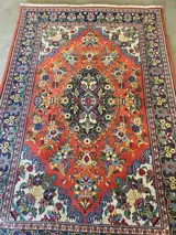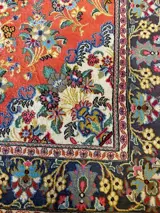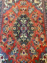 Prachtig handgeknoopt tapijt van wol. De katoen is op een natuurlijk manier geverfd zonderchemicaliën.De hoofd kleur isRood cream Blouw Groen