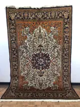 Zeer mooi en decoratief ghoum tapijt met wol en zijde in zeer goede staat zonder slijtage of vlekjes en professioneel gereinigd, kleed heeft mooie motief met bloemen en dieren , ghoum tapijten zijn wereld beroemd om hun kwaliteit en stad ghoum ligt 100 km ten zuiden van hoofdstad, bij aankoop van het kleed heeft u een juweel in je huis, kleed is voor 2000 naar Nederland geëxporteerd