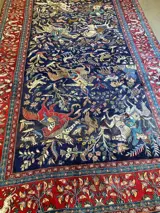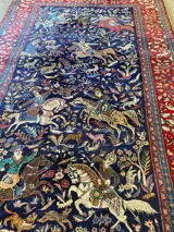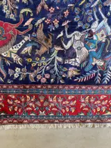 Prachtig handgeknoopt tapijt van wol. De katoen is op een natuurlijk manier geverfd zonderchemicaliën.De hoofd kleur is Donker Blouw Rood Blouw cream