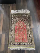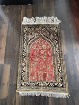 Prachtig handgeknoopt tapijt van zijde. De zijde is op een natuurlijk manier geverfd zonder chemicaliën De hoofd kleur is Rood cream Geel Blouw