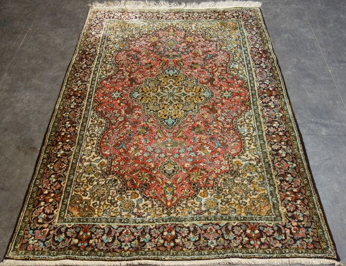 Een prachtig handgeknoopt organale gohm ghom zijden vloerkleed,