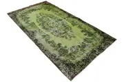 Prachtig groen vintage Oushak vloerkleed. Uitstekende vintage staat, professioneel gereinigd en klaar voor gebruik. Maat ca. 212x112 cm.