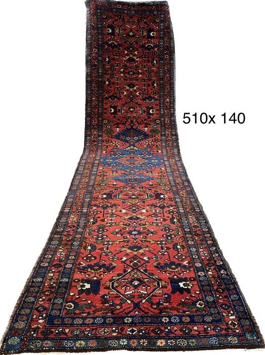 Hamadan tapijt uit Iran. In het goed staat. De tapijt is geïmporteerd naar Europa voor 2000. De maat is 510 x 140 cm