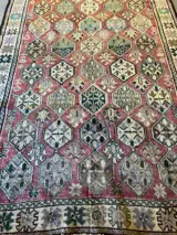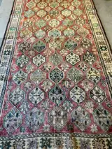 Prachtig handgeknoopt tapijt van wol. De katoen is op een natuurlijk manier geverfd zonderchemicaliën.De hoofd kleur isRood cream Blouw Groen