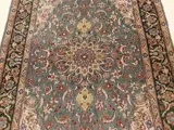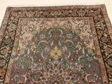 Zeer mooi en uniek perzisch Isfehan tapijt. Het is gesigneerd door de bekende Perzische tapijtmaker Davari. Het is uniek vanwege de zeer zeldzame groene kleurachtergrond. Het is gemaakt van kurkwol en veel zijde op zijde. Het is heel fijn geknoopt. 10x10 een miljoen knopen per vierkante meter. Kijk naar de foto's.