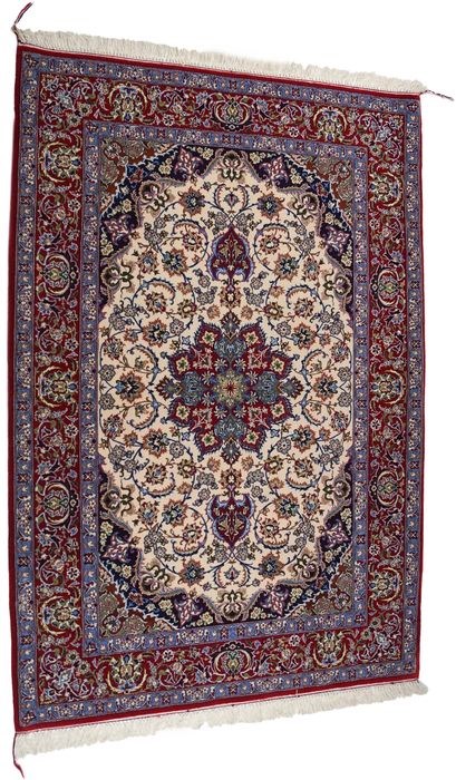 Dit Isphahan vloerkleed is vakkundig geknoopt van fijne wol en zijde.