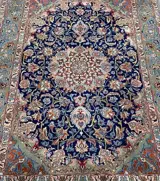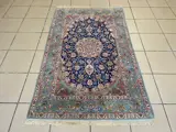 Eersteklas en buitengewone schoonheid, origineel en exclusief Perzisch tapijt Isfahan handgeweven en gemaakt van de hoogste kwaliteit Korkwol op zijden bloemen contouren worden benadrukt en gevuld met zijden draad met een kort gesneden, glanzend vlies. Het tapijt wordt bevestigd door een certificaat van kwaliteit en oorsprong. Oosters ontwerp een indrukwekkend medaillon omringd door prachtige bloemstukken en harmonieus contrasterende kleuren zorgen ervoor dat het er heel mooi en waardig uitziet wanneer het wordt uitgeklapt.