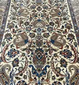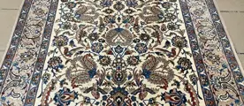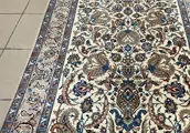Eersteklas en buitengewone schoonheid, origineel en exclusief Perzisch tapijt Isfahan handgeweven en gemaakt van de hoogste kwaliteit Korkwol op zijden bloemen contouren worden benadrukt en gevuld met zijden draad met een kort gesneden, glanzend vlies. Het tapijt wordt bevestigd door een certificaat van kwaliteit en oorsprong. Oosters ontwerp een indrukwekkend medaillon omringd door prachtige bloemstukken en harmonieus contrasterende kleuren zorgen ervoor dat het er heel mooi en waardig uitziet wanneer het wordt uitgeklapt.