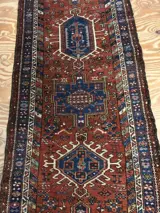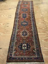 Mooie karadje loper uit noordwest Perzië met natuurlijk kleurstoffen en mooie zachte wol, loper is in goede staat voor zijn leeftijd en heeft geen kale plekken , loper is rookvrij en kan gelijk neergelegd te worden en gebruiken,loper is voor 2000 naar Nederland geëxporteerd, loper heeft mooie afmeting en past bij elke gang omdat hij niet te breed is,kleed wordt aangetekend verzonden