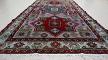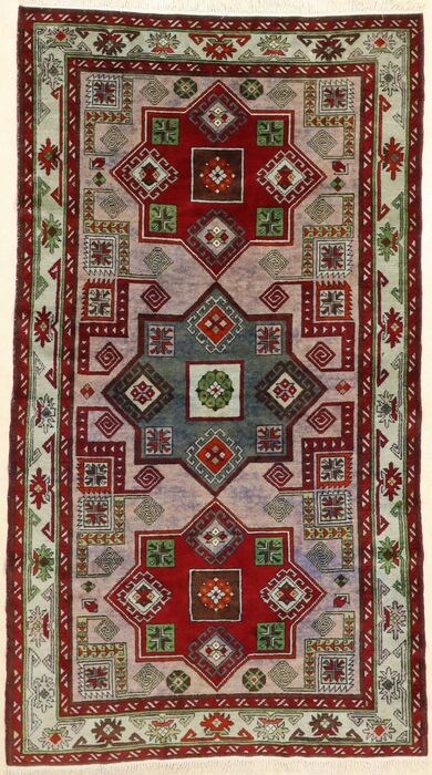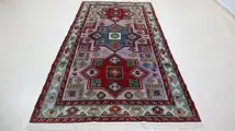 Een van de mooiste Kars Kazak Retro Boho Teak Ära frisch gereinigd met schönem Muster und Farbe vor 2012 geliefert