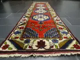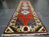 Er wordt een handgeknoopt Kazachs oosters tapijt aangeboden