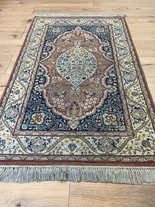 Er wordt een handgeknoopt oosters tapijt Kashmir Ghoum aangeboden.