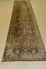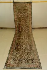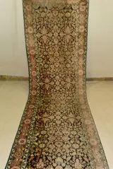 Ik bied een prachtige loper van kasjmierzijde aan in goede algehele staat. De ca. 8 mm dikke loper overtuigt door zijn uitvoerig bewerkte patroon, dat wordt omlijst door zeer mooie randen. Kijk rustig en voorzichtig naar deze hardloper.