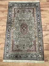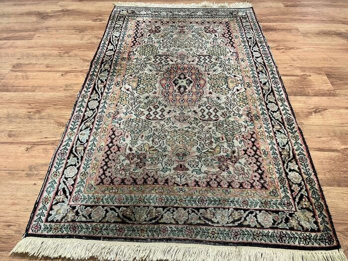 Kashmir zijden tapijten worden met de hand geknoopt in India en zijn gemodelleerd naar traditionele Perzische tapijten.