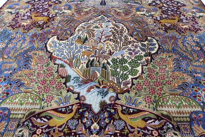 Een gegarandeerd handgeknoopt Kashmar Garden of Eden Perzisch tapijt