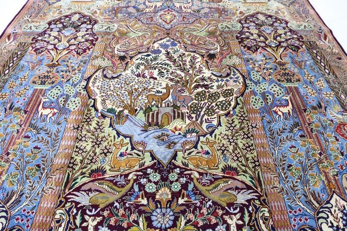 Een gegarandeerd handgeknoopt Kashmar Garden of Eden Perzisch tapijt