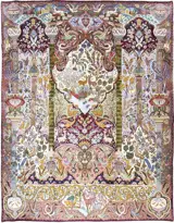 Een gegarandeerd handgeknoopt Kashmar Garden of Eden Perzisch tapijt