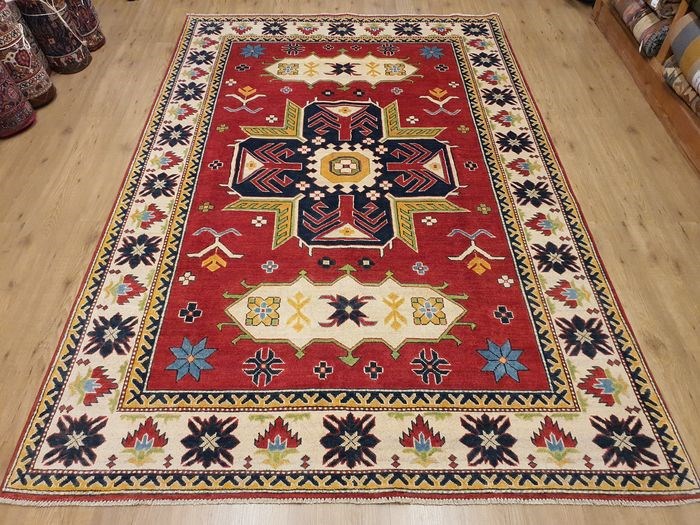 Handgeknoopt oosters tapijt kazak, wol op katoen geknoopt in pakistan.