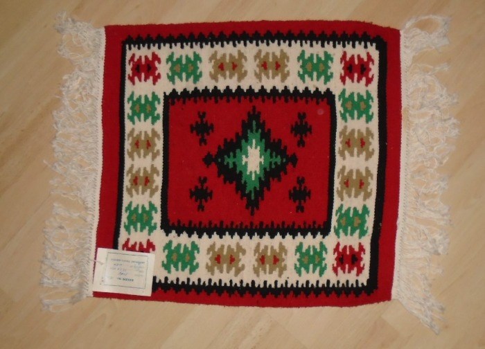 Leuk rood/groen wollen kleed nostalgisch decor nieuw.
