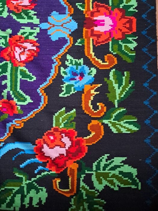 Prachtig vintage tapijt uit Transyvania, handgemaakte wol, natuurlijk pigment, geweven bloemsierkunst, zeer goed onderhouden. Dit tapijt geeft leven en kleur aan uw huis. Afmetingen: lengte 237cm. Breedte 168 cm.