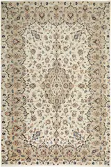De Kashan-tapijten zien er zeer elegant uit, hun uitgebalanceerde patronen in bloemversieringen en subtiele volheid van ivoor / beige en blauwe contrasterende kleuren zijn erg populair in Europa.