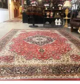 Zeer mooi; grote Oosters vloerkleed, kostbare origineel fraaie handgeknoopt Keshan Perzisch tapijt. Materiaal: gemaakt van wol. Kleur: rood met beige, groen en donkerblauwe rand klassiek / antieke bloemenmotief / patroon. Herkomst: Perzië / India Conditie: in zeer goede staat, huisdiervrij en rookvrij.Maat: L 340 x B 240 cm. Deze tapijt wordt afgeleverd met certificaat van echtheid.