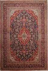 De Kashan-tapijten zien er zeer elegant uit, hun uitgebalanceerde patronen in bloemversieringen en subtiele volheid van ivoor / beige en blauwe contrasterende kleuren zijn erg populair in Europa.