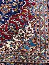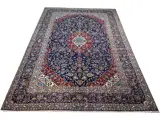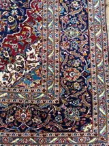 Kleuren: klassiek Kashan Marine Blue met diep rood en groen en hints van citroengeel