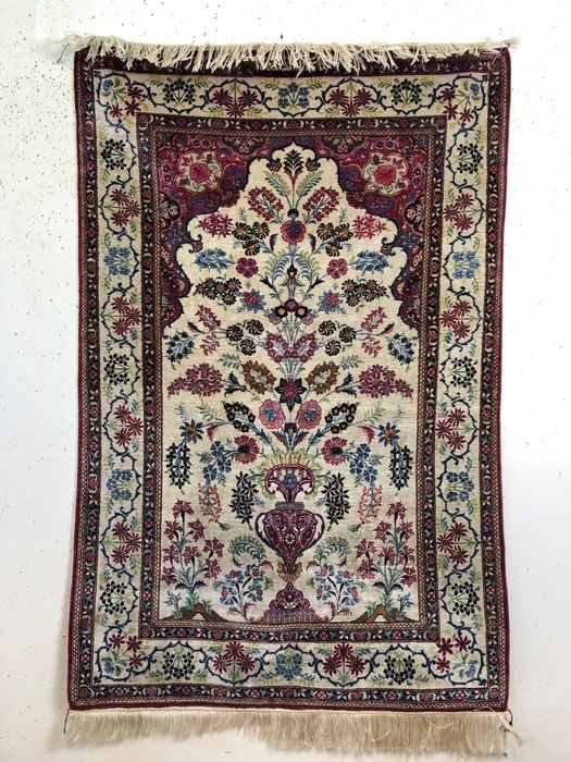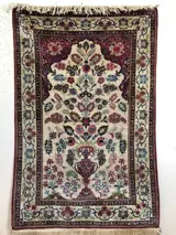 Zeer decoratief en mooie zijde keshan tapijt met prachtige kleuren, tapijt is gesigneerd door maker ( hashemi poor) meestal zijn bekende tapijten door makers gesigneerd, puur zijde tapijten uit keshan komen weinig voor, kleed heeft mooie bloem design met heldere kleuren , zijde tapijten zijn moeilijk te fotograferen en in echt zijn veel mooier, tapijt is voor 2000 naar Nederland geëxporteerd