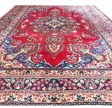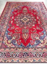 Zeer mooie vintage Oosters vloerkleed kostbaar origineel zeer fijn handgeknoopt Perzisch tapijt kirman / kerman. Materiaal: gemaakt van wol. Herkomst: Indis Kleur: rood met blauw, diversiteit kleuren, klassiek/antieke bloemen patroon, het tapijt is ca. 30 jaar oud. Conditie: het tapijt heeft zeer lichte slijtage(zie foto) de rest ziet hij er nog heel mooi uit. Maat: L 300 x B 203 cm. Deze tapijt wordt afgeleverd met certificaat van echtheid.