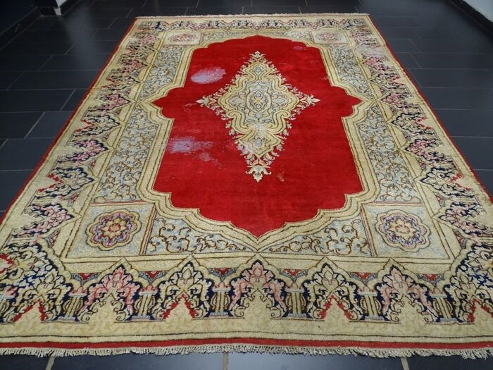 Kirman is de hoofdstad van de gelijknamige provincie in het zuiden van Iran. De tapijttraditie is hier al heel oud. Sinds de Safavid-periode onder koning Shah-Abbas I (1587-1629) worden tapijten ook geknoopt in commerciële tapijtwevers. Sinds die tijd leeft de bevolking van Kirman en de ongeveer 30 omliggende dorpen voornamelijk van de tapijtproductie. Het Kirman-tapijt wordt over het algemeen gekenmerkt door zijn zeer fijn poolmateriaal, gecombineerd met een extreem rijk bloemenpatroon. Zoals bij dit paleistapijt, waar door zijn patroon gesproken kan worden van een uniek exemplaar.
