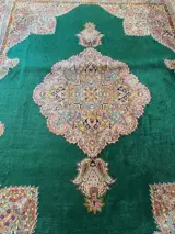 Prachtig handgeknoopt tapijt van wol. De katoen is op een natuurlijk manier geverfd zonderchemicaliën.De hoofd kleur is Groen cream Rood Blouw
