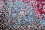 Eersteklas en buitengewone schoonheid, origineel en exclusief Perzisch tapijt Kirman handgeweven en gemaakt van de hoogste kwaliteit wol op katoen bloemencontouren worden benadrukt en gevuld met zijden draad met een kort gesneden, glanzend vlies. Het tapijt wordt bevestigd door een certificaat van kwaliteit en oorsprong. Oosters ontwerp een indrukwekkend medaillon omringd door prachtige bloemstukken en harmonieus contrasterende kleuren zorgen ervoor dat het er heel mooi en waardig uitziet wanneer het wordt uitgeklapt.
