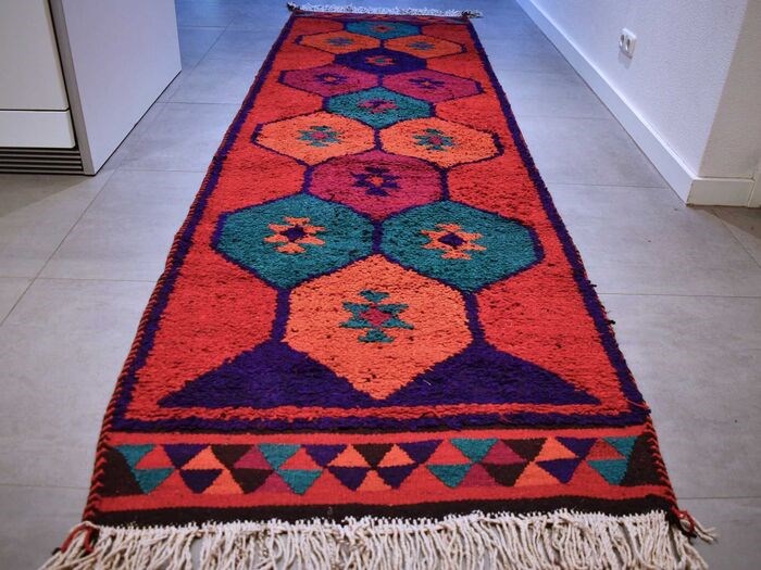 Ongelofelijk semi-antiek tribaal Kurdi Herki loper tapijt. Maat ca. 345x102 cm.