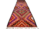 Prachtige moderne tribale Kilim loper. Maat ca. 323x78cm.