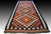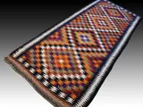 Prachtig semi-antiek Kurdi platgeweven Kelim vloerkleed. Maat ca. 288x122cm. Zeer goede staat.