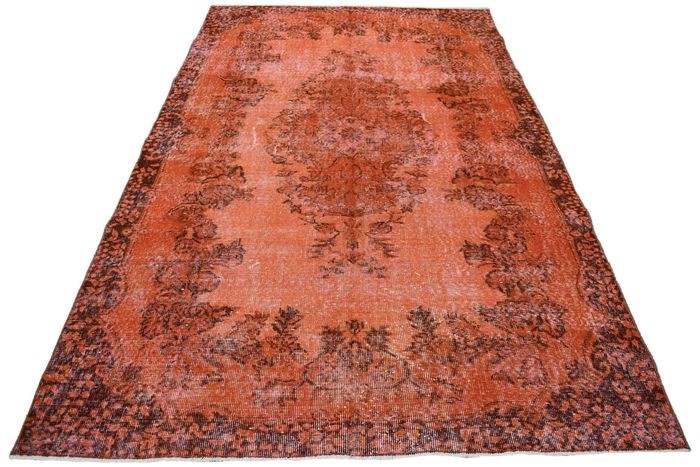 Ongelooflijk oranje vintage Oushak vloerkleed. Uitstekende vintage staat, professioneel schoongemaakt en klaar voor gebruik. Maat ca. 290x172cm.