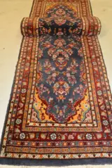 U biedt op een zeer fraaie Perzische loper -Malayer- in algehele goede staat. Dit buitengewone verzamelobject maakt indruk met zijn zeer mooie patronen en hun opstelling, bovendien maakt de geweldige rand deze unieke loper tot een absolute blikvanger. Deze ca. 1,5 cm dikke loper straalt gezelligheid en warmte uit. De wol is geverfd met natuurlijke plantaardige kleurstoffen. Het is een verrijking voor iedere woonruimte. De afmetingen zonder franjes zijn: 222 x 64 cm.