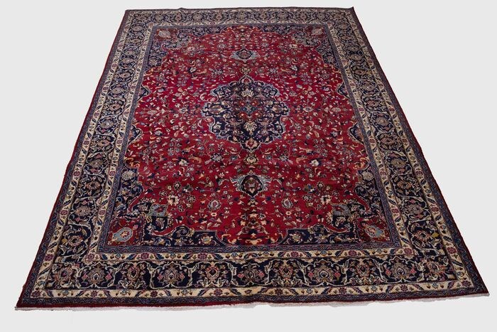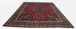 Diese Teppiche werden in Mashad, der Hauptstadt der Provinz Khorasan, einem Gebiet in Nordost-Persien geknüpft. Das Muster is häufig vom Medaillon-Typ in dunklen blau-roten en blauen Farbschattierungen and the Wolle des Teppichs ist sehr weich. Die Mashad Teppiche wordt vaak een van de Keshan Teppiche.