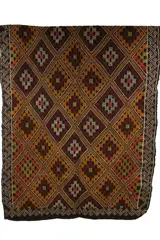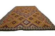 Deze handgeweven vintage kelim is gemaakt in de jaren 70-80 door nomaden in het dorp Mersin. Voordat ze met het weven begon, was de wever haar schapen aan het scheren, de wol aan het schoonmaken, kammen en spinnen om het beste kelimgaren te krijgen. Het weven van tapijten is een traditie in Turkije en elk dorp en elke stam heeft een andere ontwerp- en weeftraditie. Dit vloerkleed heeft karakteristieke kleuren & design combinatie.