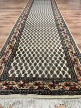 Dit tapijt wordt geknoopt in werkplaatsen in India. Het tapijt is gemaakt van fijne wol en heeft een hoge knoopdichtheid, wat zorgt voor duurzame tapijten. Wollen tapijten zijn zeer duurzaam en perfect bestand tegen slijtage door dagelijks gebruik. Wol heeft van nature een vuilafstotende werking en is gemakkelijk schoon te houden.