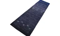 Uitstekende ongebruikte lange moderne blauwe Gabbeh loper tapijt. Maat ca. 298x80 cm.