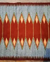 Prachtig handgeweven tapijt, natuurlijke kleuren, wol en synthetisch materiaal, duurzame en sterke, dichte stof.