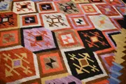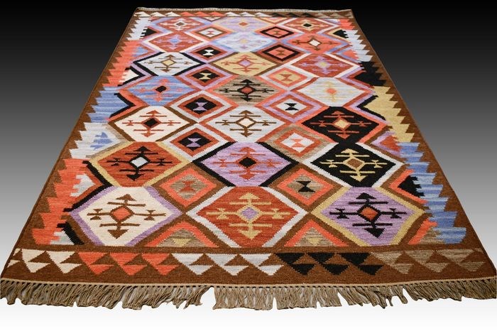 Prachtig ongebruikt modern kazak design kelim vloerkleed. Maat ca. 184x127 cm.