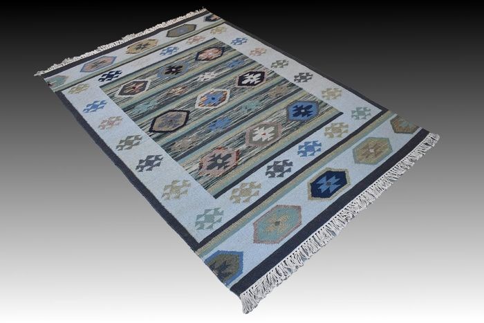 Indrukwekkende grote kleurrijke Kelim. Zeer goede staat, professioneel gereinigd en klaar voor gebruik. Maat ca. 180x125 cm.