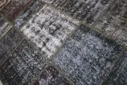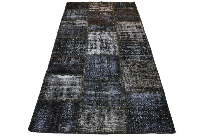 Prachtig modern zwart/grijs vintage Patchwork vloerkleed. Maat ca. 205x105 cm.