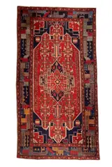 Nahavand is een stad in de provincie Hamadan in het westelijke deel van Iran, een regio die bekend staat om de productie van tapijten van buitengewone kwaliteit dankzij de grondstof die ze gebruiken: wol van de beste kwaliteit. Deze tapijten onderscheiden zich van de rest door hun nomadische en geometrische motieven. De dominante kleuren zijn vaak een soort roestrood en beige op een donkerblauwe achtergrond.