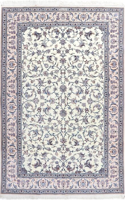 Aangeboden wordt een echt handgeknoopt Perzisch tapijt uit Nain 6 La Habibian / Iran